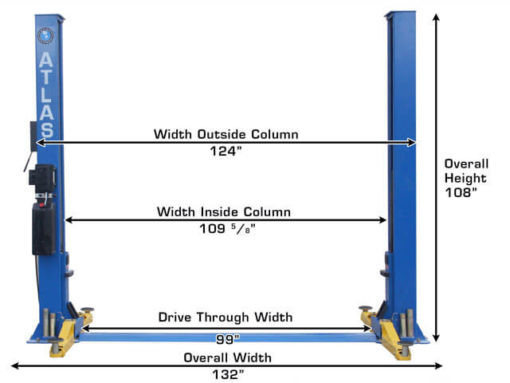 The Atlas® BP10000 is a baseplate two-post lift designed for low ceiling garages. The total column height of 108 inches or 10 feet allows this lift to be installed in almost any professional or home garage with a ceiling as low as 10 foot 3 inches. The BP10000 also has many of the popular features found on larger more expensive lifts, including a single-point lock release, Super-symmetric arms, and a twelve piece truck adapter set.