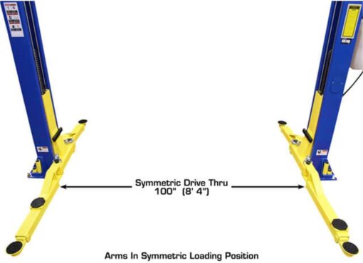 The Atlas 9KOHX has symmetric columns and specially designed arms that can be set in either the symmetric or asymmetric position. As a result of the asymmetric/symmetric arm design the lift offers an extremely low lift pad position on the EZ-metric lift arm configuration.