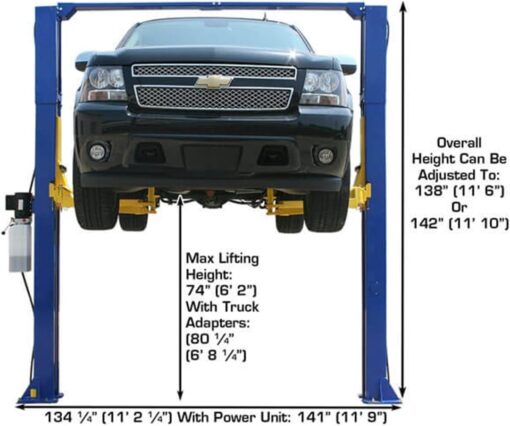 - NO DIESEL TRUCKS- For 3/4 ton diesel and larger we recommend a 10k-11k lift due to the weight on the front two arms.