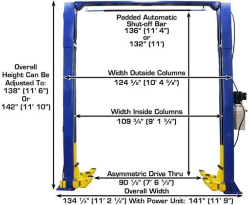 The Atlas 9KOH can be adjusted to two different height settings: 11′ 6″ or 11′ 10″ (Our shortest available overhead lift)