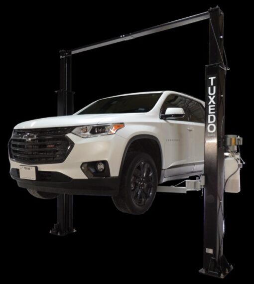 The Tuxedo 9,000 lb 2 Post Asymmetric overhead lift is an economy lift perfect for a home garage. It has a few less features than our RTD 9k lift to maximize your money! Our lowest pad height of 4″ for the lowest cars. See the ‘Specifications’ tab for complete details and dimensions.